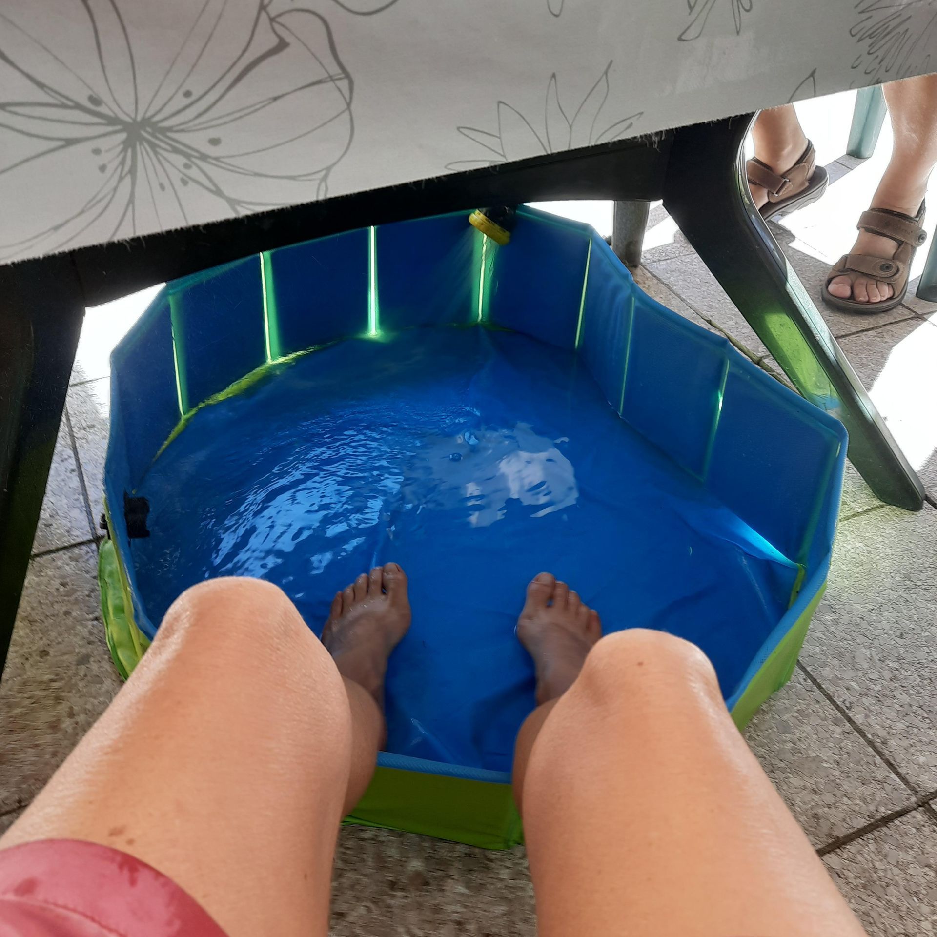 - unterm Tisch ein Bassin als Fußbad (ein Glück, dass die Hündin des Hauses keinen Spaß daran hat),