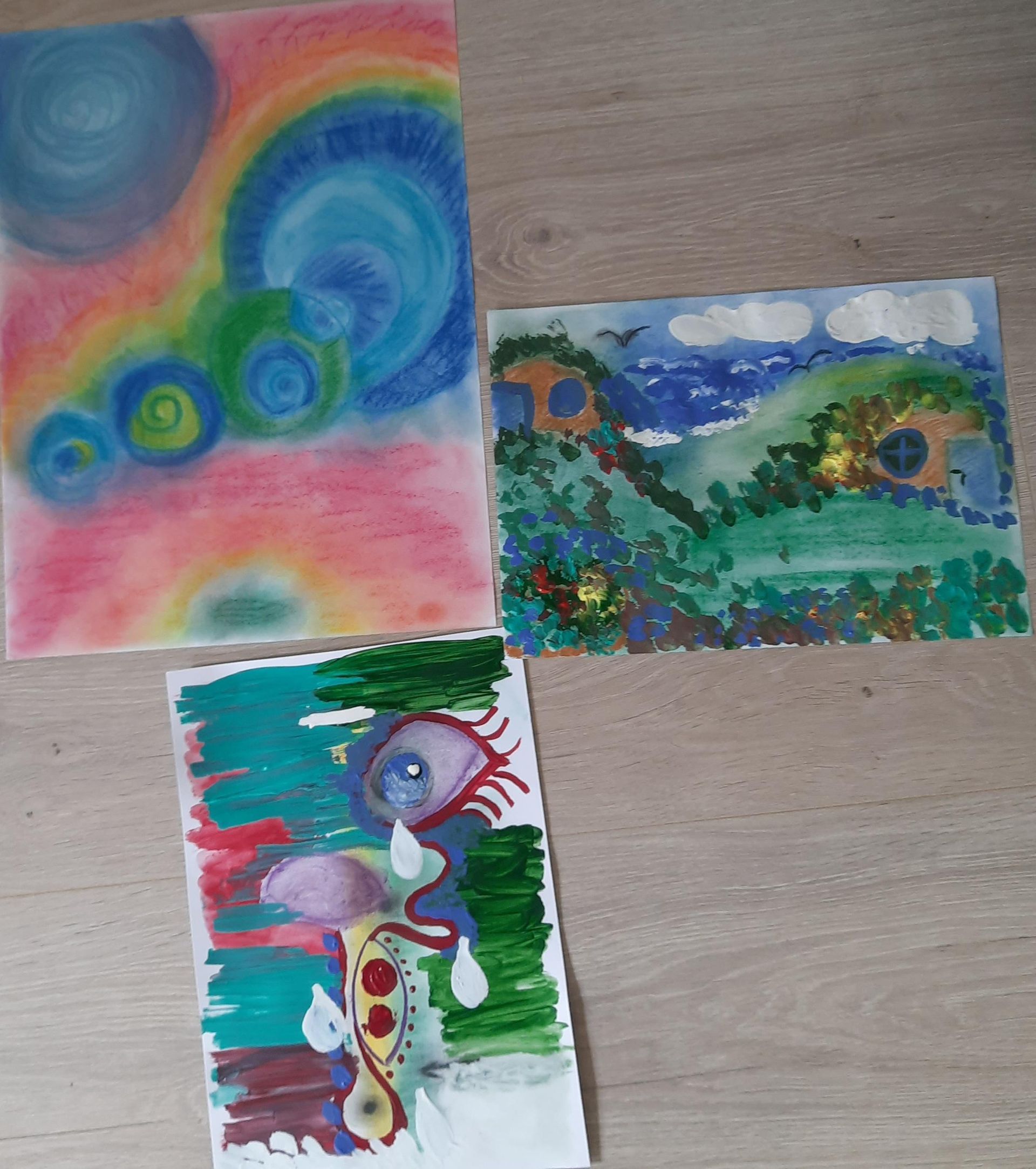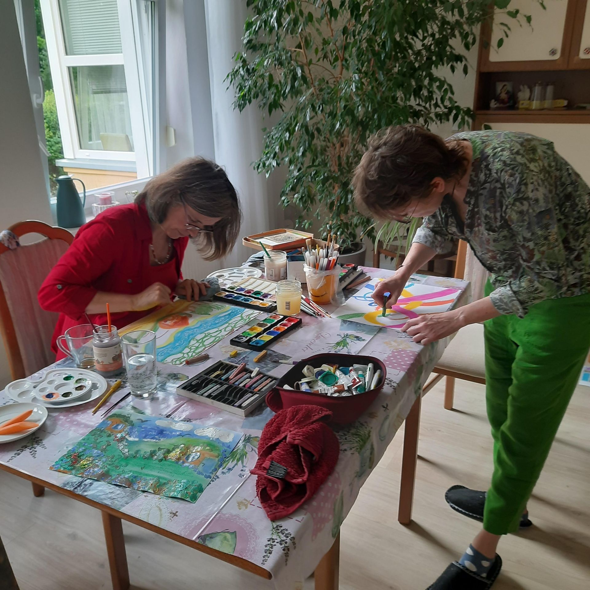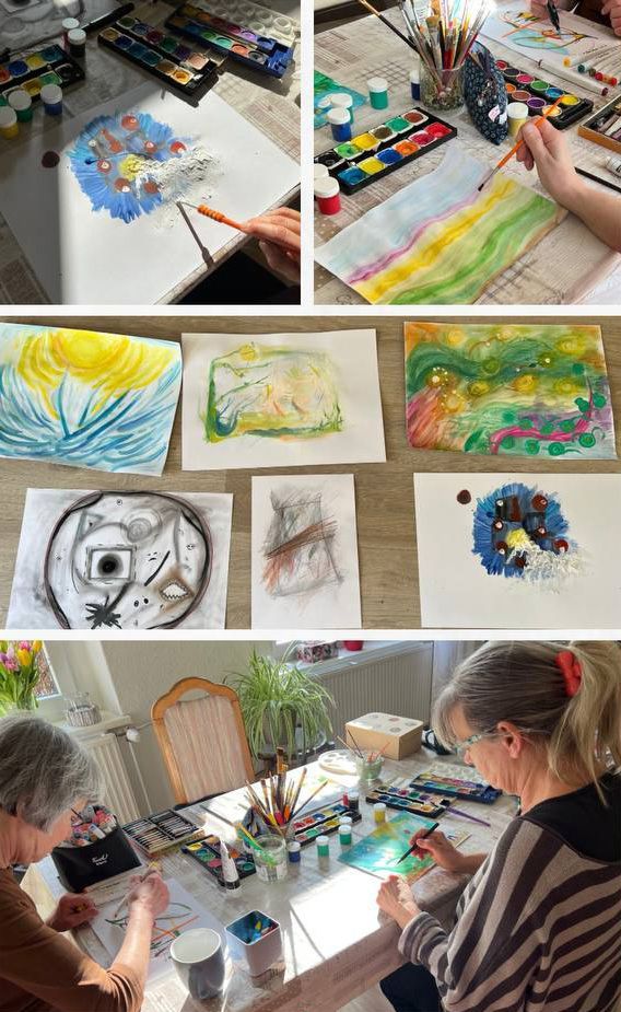 Viele verschiedene Materialien - Wasser- und Acrylfarbe, Pastelkreide, Buntstifte, Filzer und Tempera - alles kann zum Einsatz kommen... miteinander, nebeneinander, übereinander. Es gibt dabei kein gut oder schlecht, kein richtig oder falsch, nur dich und dein Innenleben.