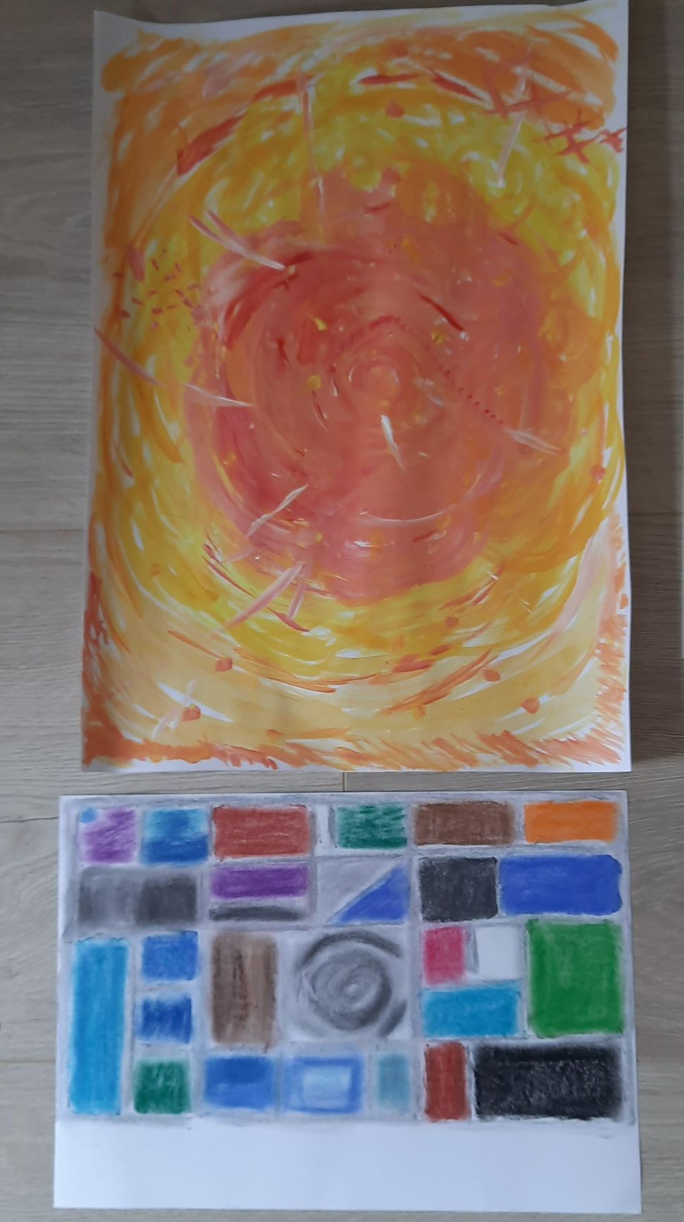 Inzwischen haben wir diese Form des Malens regelmäßig praktiziert. Sie ist eine wundervolle Methode, den eigenen Gefühlen, Bedürfnissen und Wünschen Ausdruck zu verleihen. Dazu brauchst du keine Künstlernatur zu sein, denn einmal begonnen, entwickeln deine Hände sozusagen ein Eigenleben.