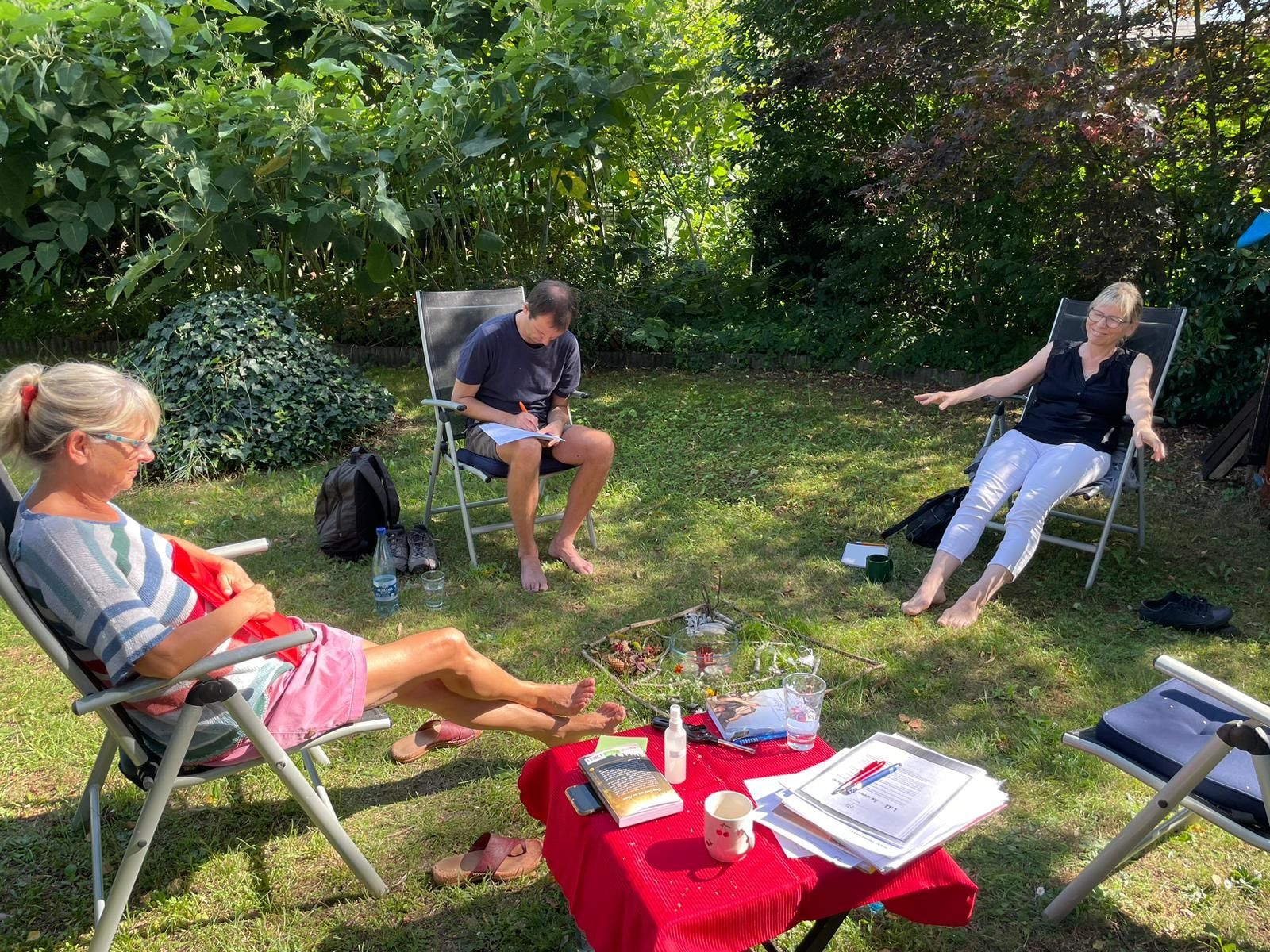 Teilnehmerstimmen: "tolles Ambiente (ein zauberhafter Garten), ich bin zur Ruhe gekommen, sehr gutes Konzept und Vorbereitung, leckeres Buffet, beide Akteure haben sich harmonisch ergänzt"
